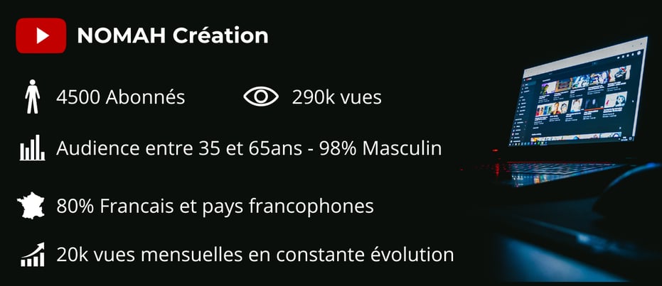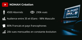 En pleine expansion, NOMAH CREATION promet une croissance soutenue grâce à une audience croissante et à un contenu de qualité, offrant aux partenaires une opportunité stratégique pour établir une relation durable avec un créateur en plein essor.