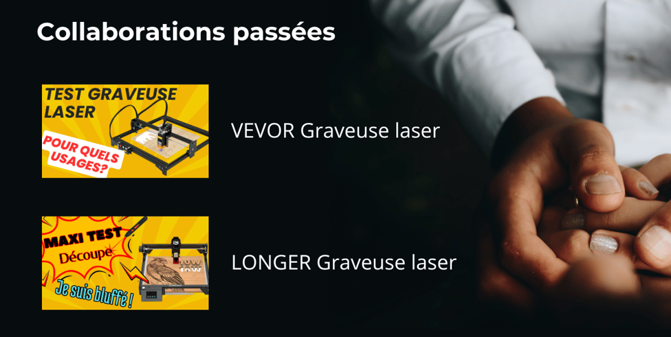 Offrez à votre marque une visibilité authentique et naturelle auprès d'une audience passionnée. Intégration de vos produits dans des projets concrets, tests détaillés et présentations innovantes pour maximiser l'impact et l'engagement.